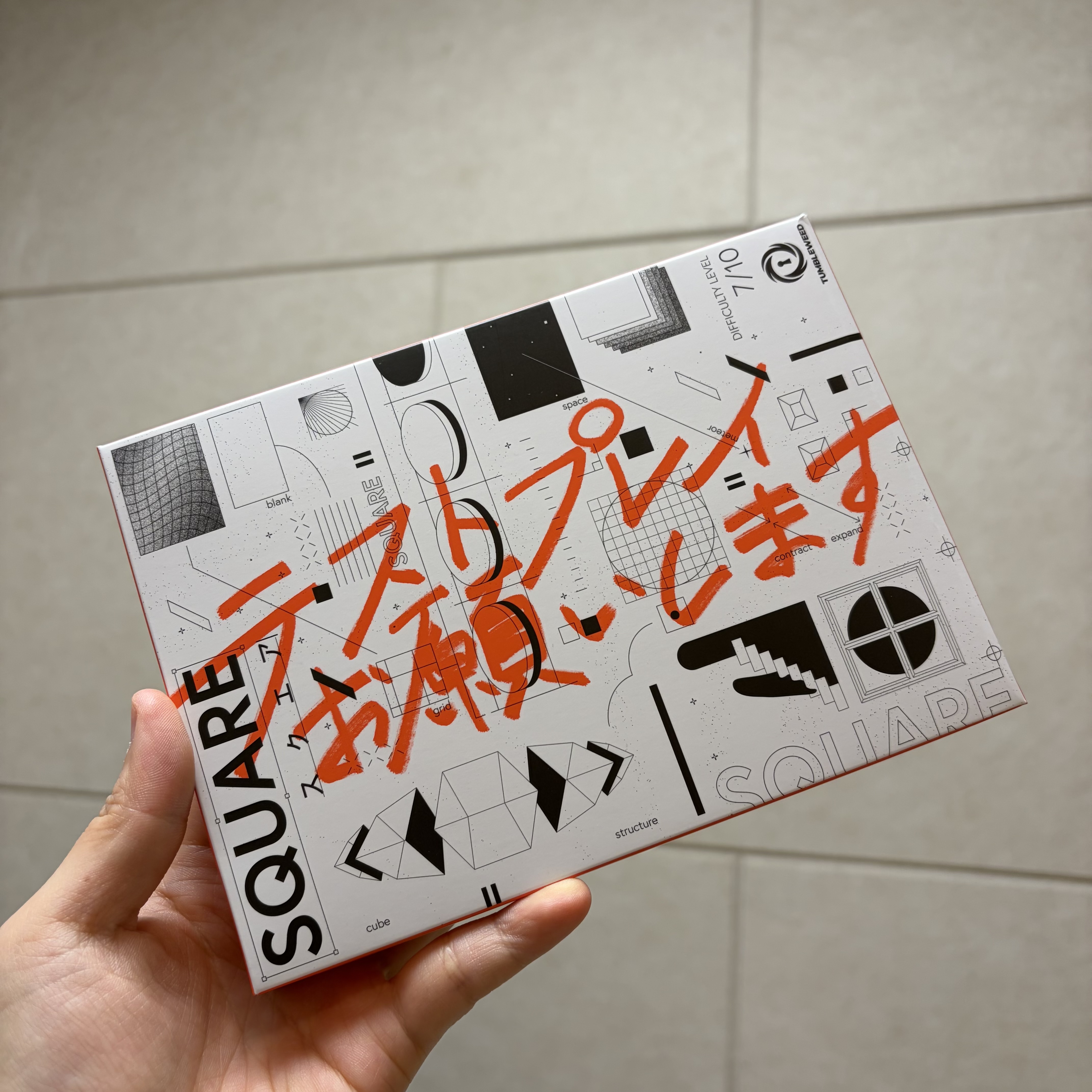 하얀 배경에 강렬한 빨간색 펜으로 휘갈겨진 ‘테스트 플레이 부탁드립니다.’라는 문장. 종이에 휘갈겨진 느낌이 날것의 느낌이 들어서 진짜 출시 전 테스트 제품이구나, 싶어서 패키지 디자인을 처음 봤을 때부터 기대감이 들었던 작품이었다.